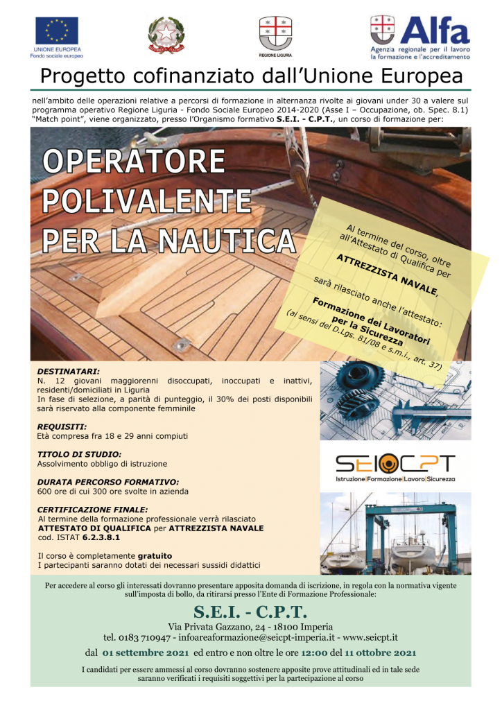 STAGE | Lo stage sarà svolto in alternanza presso aziende operanti nel settore della nautica aventi sede nel ponente ligure. |